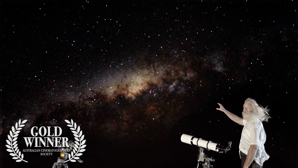 FORMAT: Sony F55 with Canon CineZoom (17-120mm) captured daylight sequences, and 2x low light Sony a7sII with fast Zeiss and Sigma Art series primes were utilised for night time sequences. A Phantom 4 Pro drone was employed for all drone sequences. For Greg's sequences under the starfields, we composited two Sony a7s cameras together from a two camera rig - one focused and exposed on the starfield, and other focused and exposed for Greg - this allowed Greg to talk to the audience in real time about actual stars around him - and for us to show with stunning clarity the star fields of the night skies.